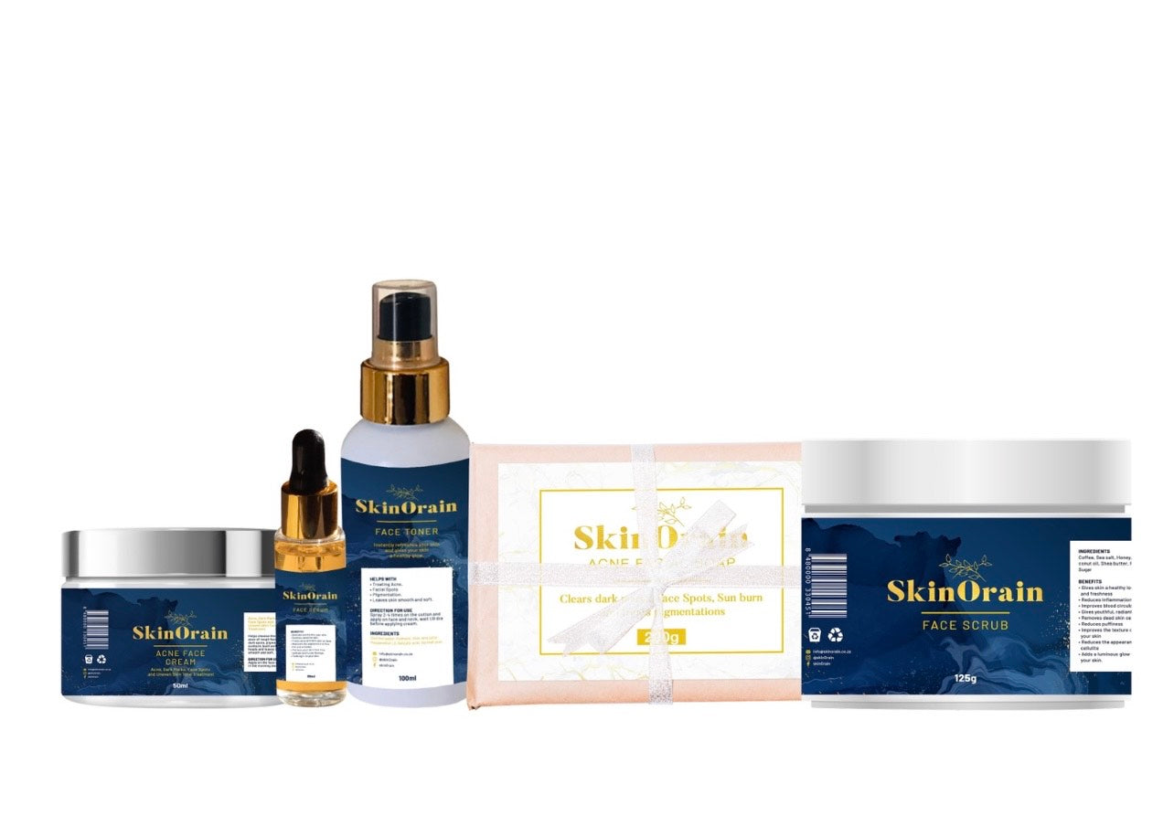 The SkinOrain Full Face Combo is a powerful, plant-based skincare set designed to fight acne, fade scars, balance oil, and reveal your skin’s true glow. Each product is formulated with targeted ingredients like niacinamide, rosehip, kojic acid, and camwood powder trusted for their deep-healing and skin-brightening benefits.